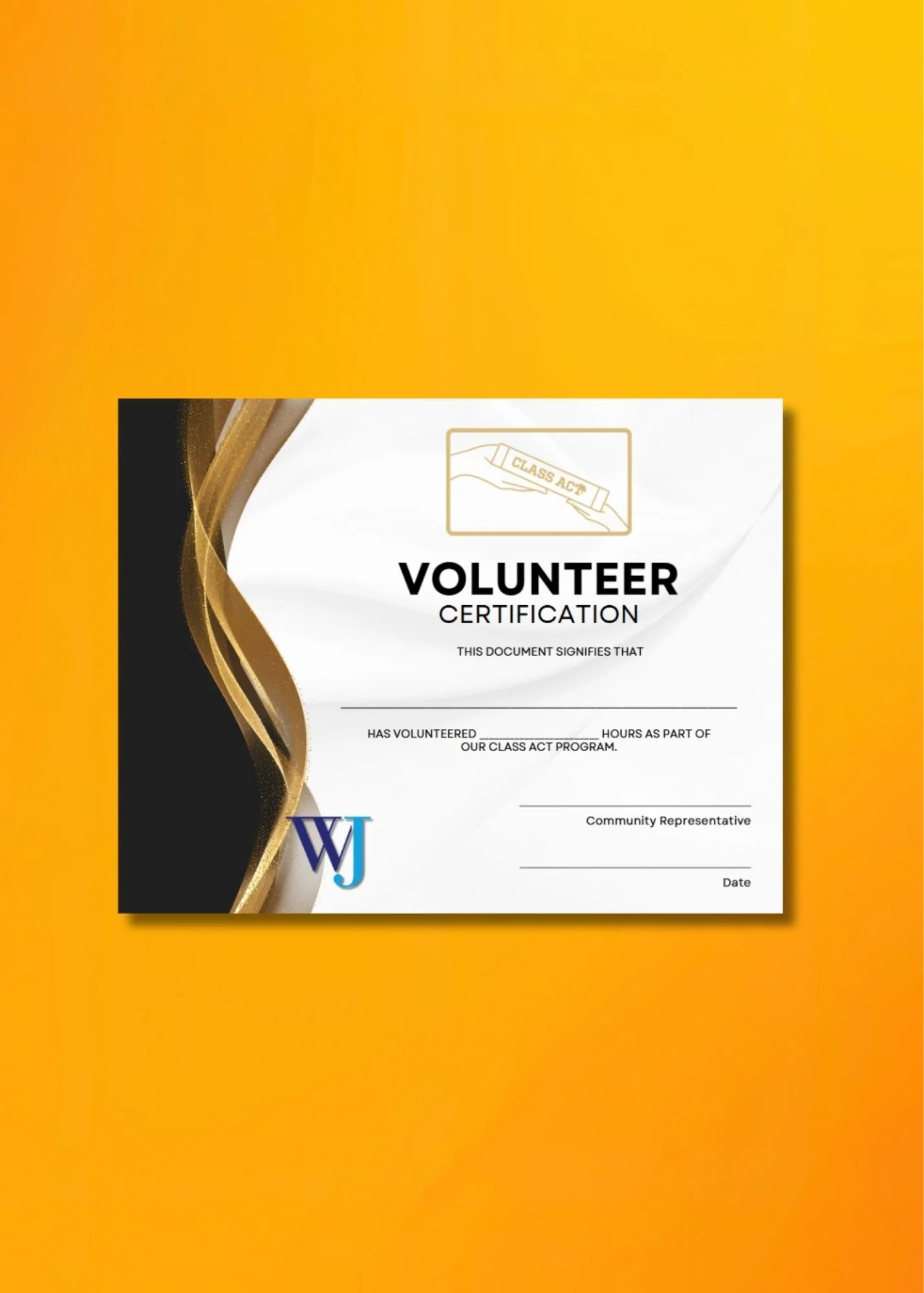 Your Class Act volunteers may need documentation of their volunteer hours. Print and complete this volunteer certificate as needed!